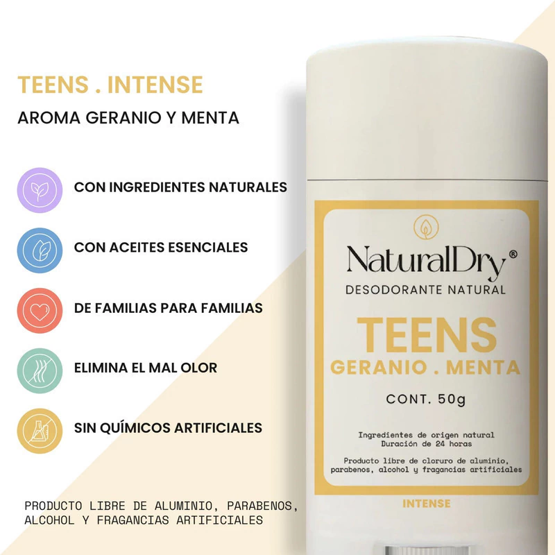Desodorante NaturalDry Teens Intense Geranio Menta En Barra