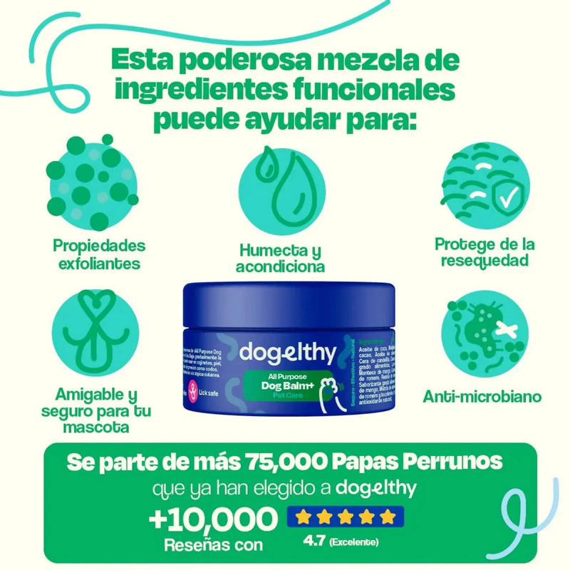 El bálsamo Dog Balm, está cuidadosamente formulado para brindar beneficios en las patitas, nariz y puntos de apoyo de tu perrito. Áreas que usualmente no les prestamos atención, pero son igual de importantes para el bienestar de tu mascota y evitar la formación de hiperqueratosis.