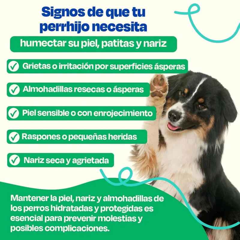 Los componentes del bálsamo buscarán crear una capa protectora que actuará como barrera, evitando irritaciones o daños debido a los elementos externos con los que convive el perrito y suaviza las áreas que ya se encuentran engrosadas y endurecidas por diversos factores, garantizando una mayor comodidad y salud para tu mascota durante sus actividades diarias.