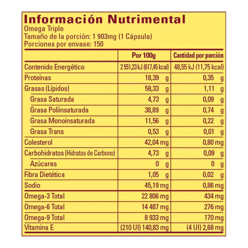 NATURE MADE OMEGA TRIPLE Contiene los 3 ácidos grasos esenciales Omega 3, 6 y 9.