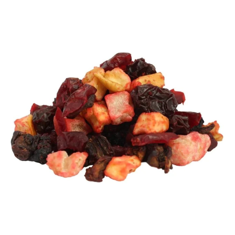 Tisana frutal, hecha a base de fruta osmodeshidratada. En este proceso de deshidratación, la fruta no pierde por completo su humedad, lo que permite una infusión más rápida. No tiene agregado extra de azúcar, únicamente el que contiene la fruta.